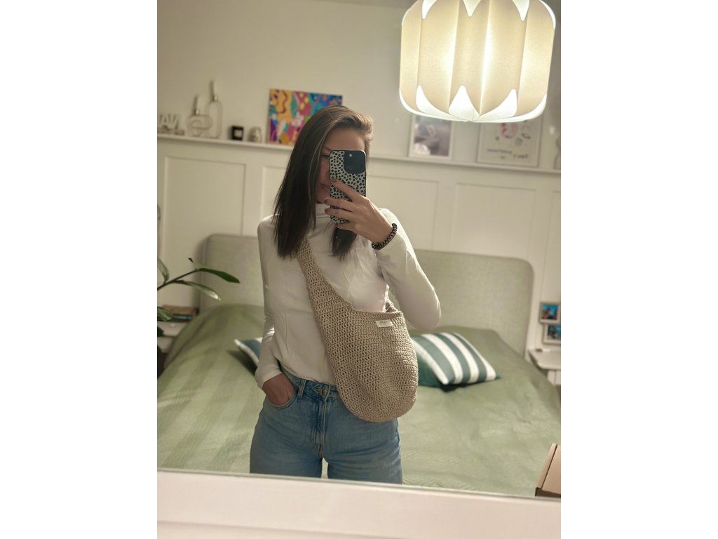 Jednoduchá, nadčasová a ručně háčkovaná z kvalitní příze. Kabelka Elara v odstínu písek je ideální společník na každý den.🖤